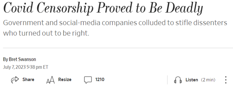 Wall Street Journal – A Censura sobre a COVID-19 se mostrou Letal