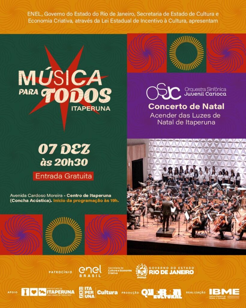 A programação do Natal do Interior de Itaperuna segue nesta semana com evento o Música para Todos com várias apresentações musicais no centro da cidade, na área da Concha Acústica. São apresentações das Orquestras Sinfônica Juvenil Carioca e Sinfônica Juvenil Chiquinha Gonzaga acompanhadas de artistas de renome nacional.